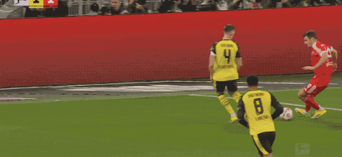 第54分钟,多特蒙德防线造越位,基米希挑传,格纳布里反越位插上头球助攻,凯恩一蹴而就。