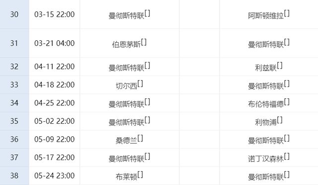 打完维拉,曼联就将做客对阵伯恩茅斯,后者已经连续9轮不败,而且前15个主场,6胜7平,仅仅输给了埃弗顿和阿森纳,这场比赛曼联随时将会丢分。第32轮,曼联将回到主场迎战利兹联,这也是他们剩下的赛程当中,最为轻松的一场比赛。如果这场都拿不到3分,曼联争四将会出现大问题。之后3轮比赛,曼联将对阵切尔西、布伦特福德和利物浦,这3个对手都排名前八,也是曼联最为艰难的一波赛程。后面曼联还将做客桑德兰、诺丁汉森林和布莱顿,其中桑德兰和布莱顿都是主场龙,他们是英超出了名的硬骨头,曼联很难轻松拿分。至于诺丁汉森林,他们为了保级,都能在曼城的主场拿分,届时在老特拉福德,诺丁汉森林一旦拼命,曼联未必能拿到3分。